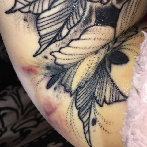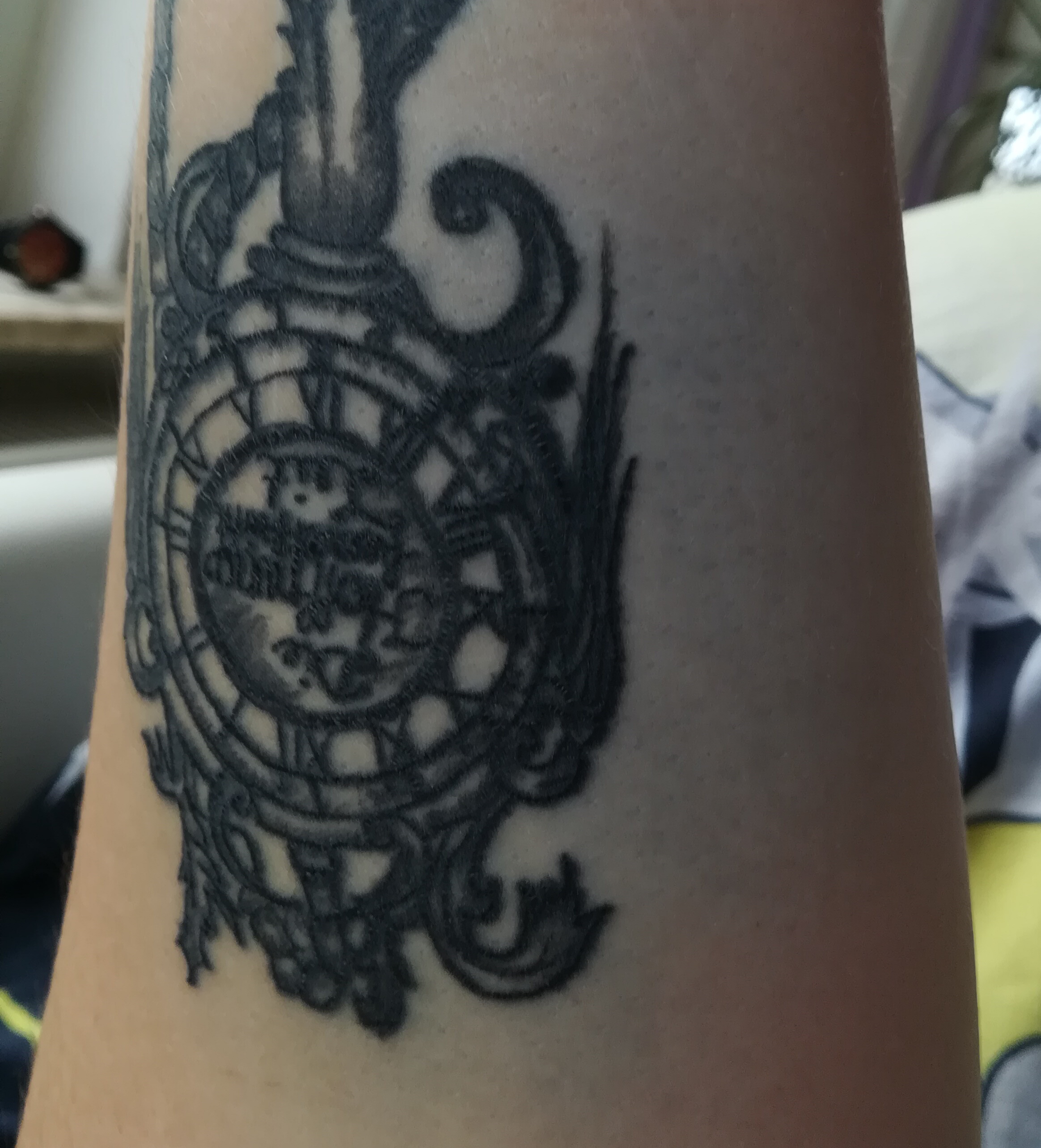Tag tut das Tattoo beim Aufstehen weh wie ein Muskelkater und beim Laufen fühlt es sich ähnlich an. Es dauert etwa zwei bis drei Wochen bis die Blutzellen abgebaut sind und die blauen Flecken gänzlich verschwunden sind. Bis zu einem gewissen Maß sind eine Schwellung und ein Austreten von Wundsekret nach dem Tätowieren also.